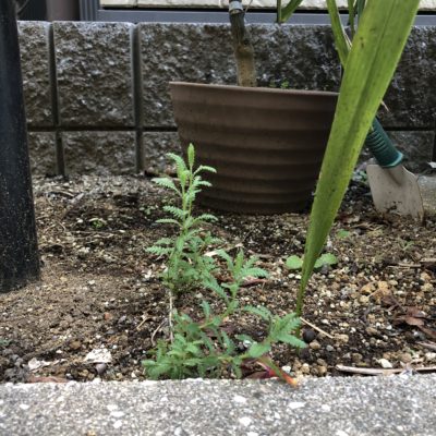 雑草の中にラベンダーとチューリップの芽を見つけました。
